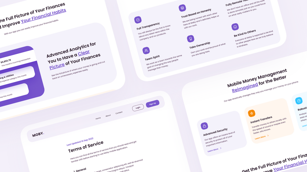 The main advantage of Moby is that you won't have to design & build a marketing website for your mobile application from scratch ever again as we have already taken care of it.
